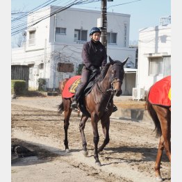 そして、乗っていたのはポッドテオ。アーリントンCに出走するための調整を終えて、厩舎へ戻…