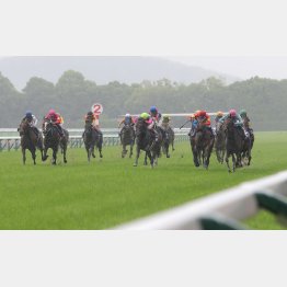 宝塚記念(写真)の2つ前の京都9R瀬田特別。芝千四で1分21秒2が出た。確かに3馬身半差と少し千切れた競馬ではあったものの、時計はそう遅くない。しかも、天候は曇り。雨は一時的にやんだ。