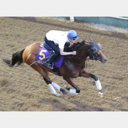 中間は放牧を挟んで調整。9月10日に戻り、順調に乗り込まれてきた。先週はレジェンドが手綱を取り、坂路4F52秒0―11秒9で楽々と先着。今週は馬なりでサッと駆け上がっている。