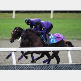 今週はポリトラックで助手が騎乗。道中は前肢を強くかき込むドウデュースらしいフォームだ。僚馬を1馬身前に見ながら3F標付近で内から並びかけると、最後まで無理せずにフィニッシュして5F69秒2―39秒5、1F11秒7。