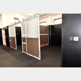 以前は、成田国際空港から検疫先の千葉県白井市のJRA競馬学校に入り、7日間の検疫を終えたのち、東京競馬場へ移動するのが常だった。輸送の負担を軽減し、快適にレースするために新設されたもの。スタンド側には高さ3mの防音壁を構え、馬房は二重窓。歓声対策もできている。馬房には管理馬を24時間モニタリングできるカメラも。〝ウェルカム〟な施設ともなっている。