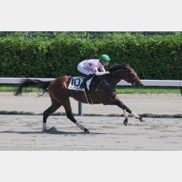 マテンロウダビンチの初戦は圧巻。2番手正攻法から手応え十分で直線に向くと、軽くハミをかけ直す程度でグングン加速。②着に6馬身差をつけてみせた。