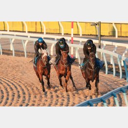 けさは3頭併せの真ん中に入って5F67秒9―38秒8、1F11秒8を馬なり。内には首差遅れたものの、外には2馬身先着した。前脚の可動域の大きいダイナミックなフットワークに好感が持てたし、好調キープとみていい。
