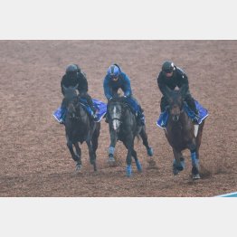 角馬場でじっくりウオーミングアップをしてから、ウッドの3頭併せで併入の5F67秒3―37秒5。道中は最後方で先頭から2秒ほど離れて追走し、徐々に間合いを詰めて内に併せた。楽な手応えのまま力強いフットワークで3頭横並びでフィニッシュ。当該週ということで余力を…