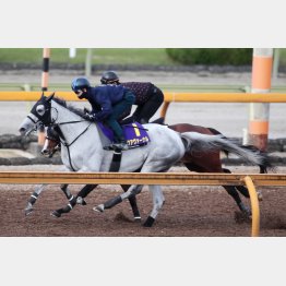 先週に続いて松山が騎乗しての追い切り。その1週前は先行して内から並ばれてからの追い出し。乗りやすさ、他馬に来られてからの挙動、追い出しての動きなどを確認していた。今週も松山騎乗で先行し、道中はリズムのいい走りで直線は僚馬が来るだけ伸びる感じのフィニッシュで、6F84秒8―37秒2、1F11秒4。牝馬でも相変わらず力強いフットワークだったのがいい。非常に高いレベルで状態はキープしている。