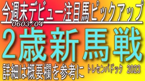 - 2歳新馬 / 注目馬をピックアップ・2023年6月3日、4日…